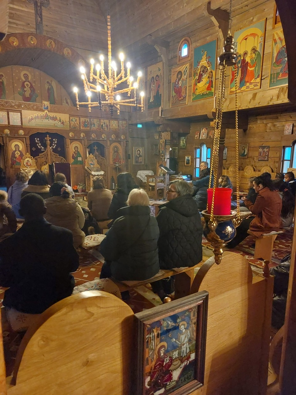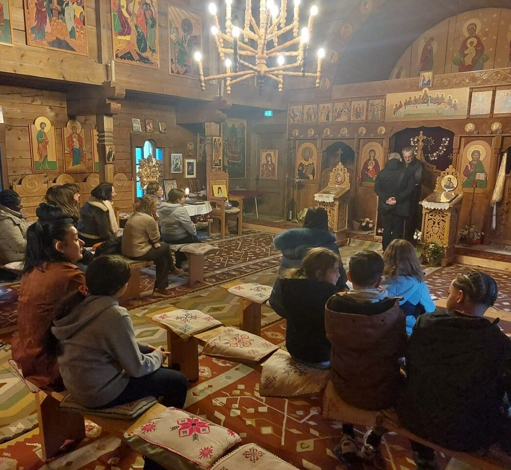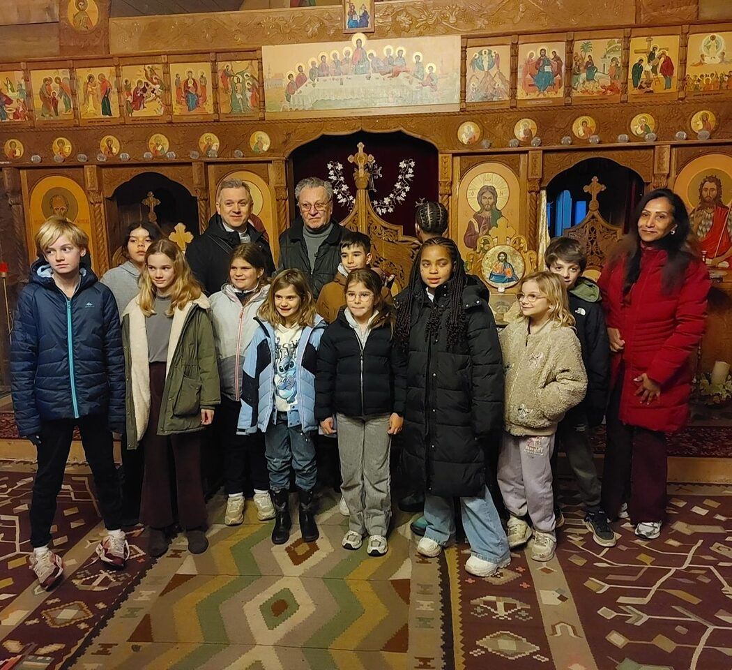 Enfants, parents et l’Equipe pastorale en visite chez le pope Damian, de l’église orthodoxe de Thônex, mercredi 4 février. Rencontre lumineuse…