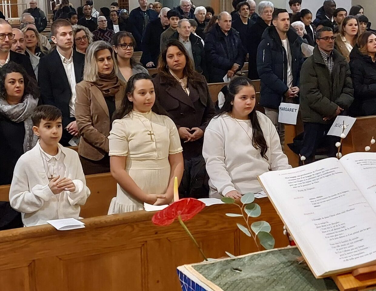Rebecca, Margaret et Ilan ont reçu la première des communions samedi 7 février à Chêne !
