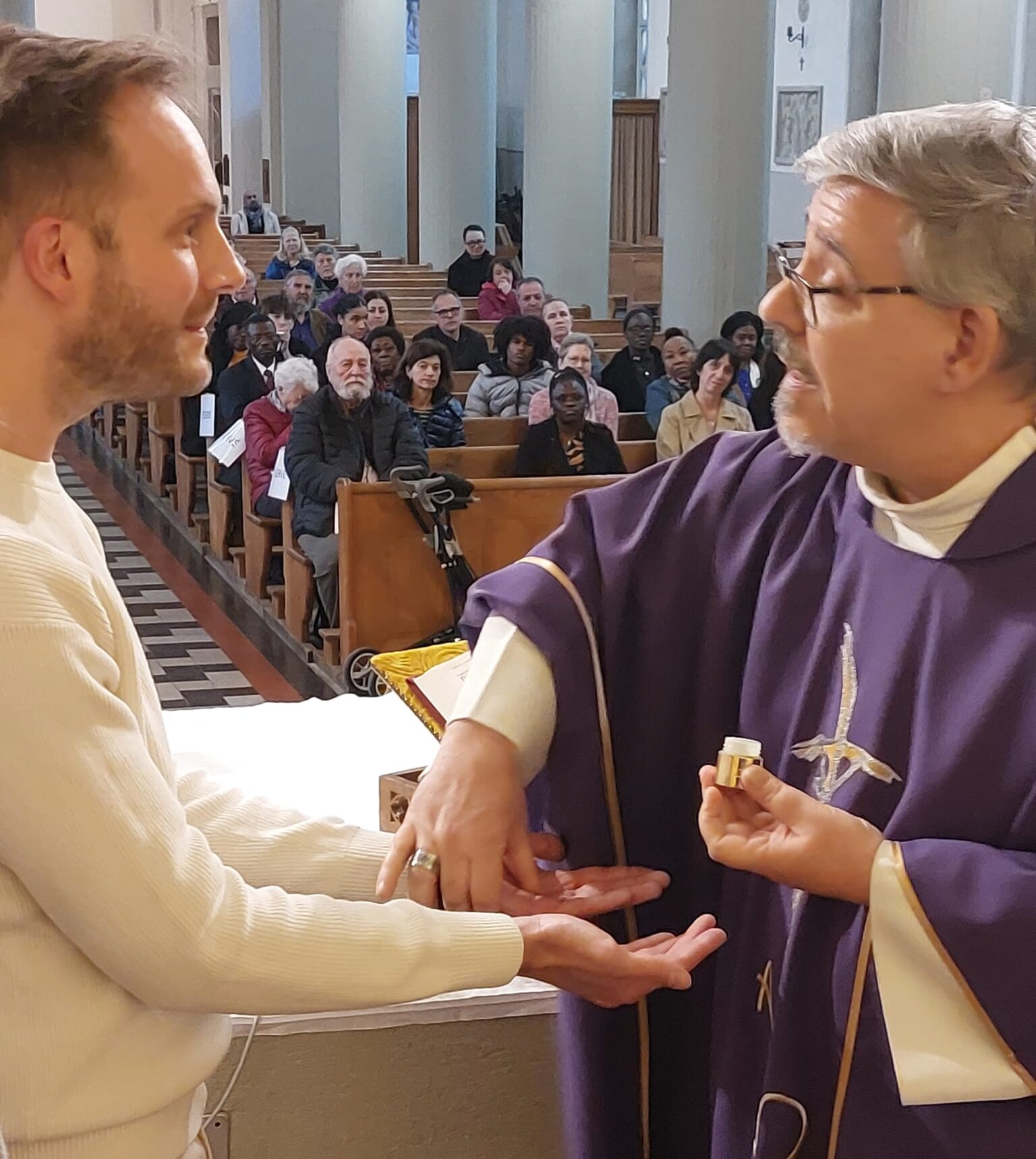 Samedi 7 mars à Chêne, Nikolai a été accueilli dans la communauté par le rite d’Entrée en catéchuménat, effectué non sans émotion par sa maman Brigitte.